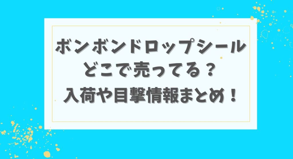 SNSでも話題になっているボンボンドロップシール。 ぷっくりキラキラした可愛いシールは、子供から大人まで大人気で入手困難なアイテムです。 そこで今回は、ボンボンドロップシールがどこで売っているのか、入荷や目撃情報について紹介したいと思います。... -