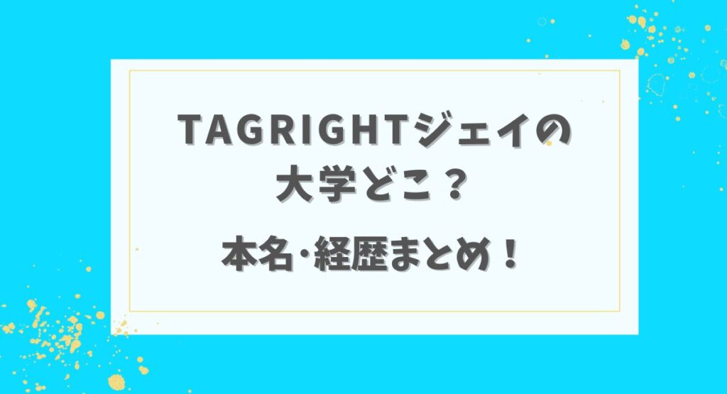 TAGRIGHTジェイの大学どこ?本名・経歴まとめ!