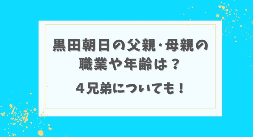黒田朝日の父親・母親の職業や年齢は?4兄弟についても!