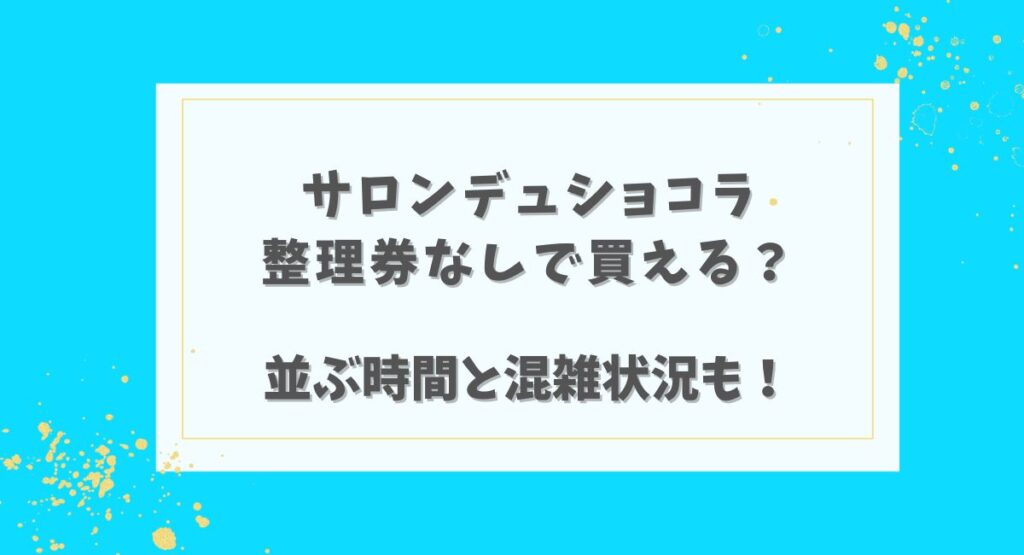 サロンデュショコラ2026整理券なしで買える?並ぶ時間と混雑状況も!